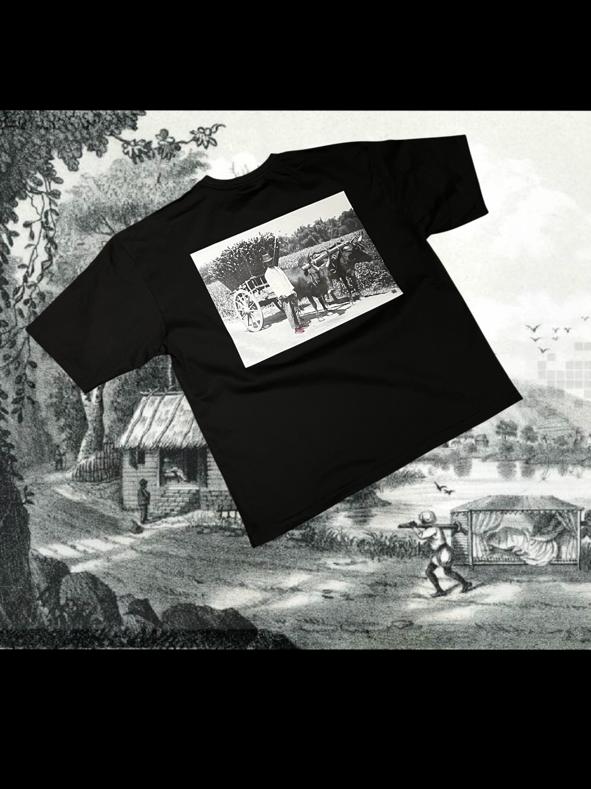 T-Shirt Noir Oversize Charrette Boeuf Lontan